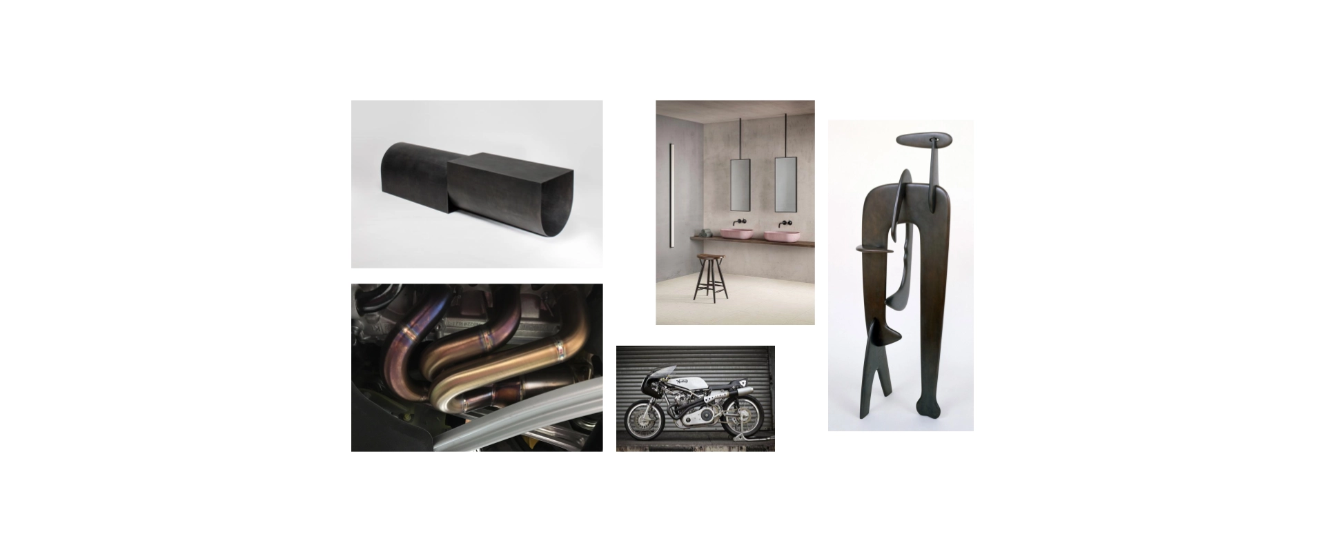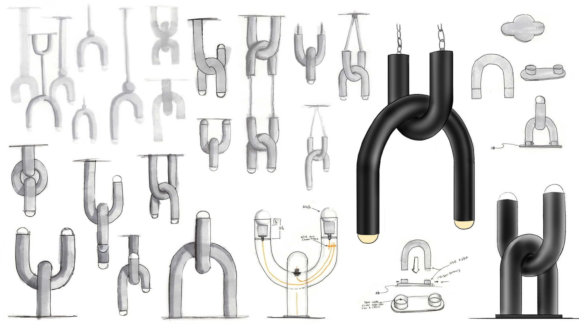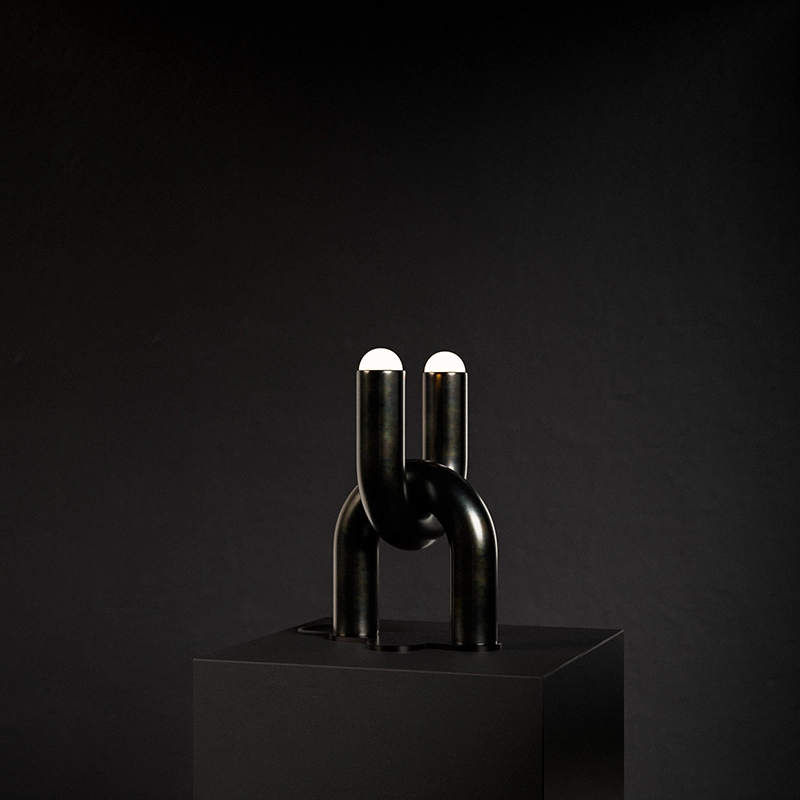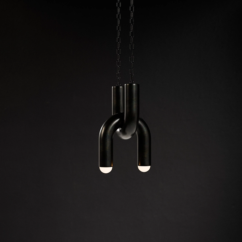 Exhaust Lamp is a modular lighting system made from off the shelf parts intended for the automotive aftermarket. With hand applied finishes and sculptural compositions, accessible materials are seen in an unexpected way.